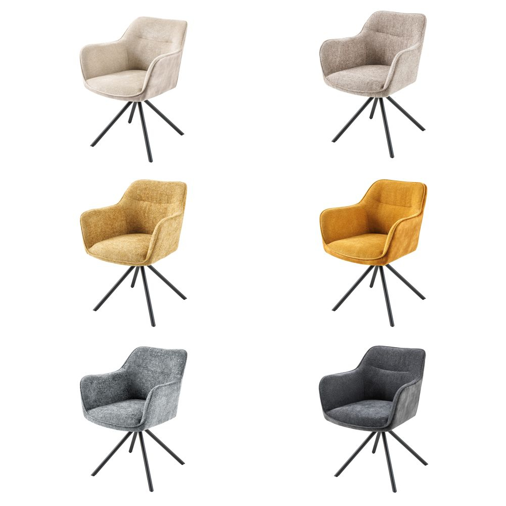 - 180° drehbarer Stuhl ANDREA Beige Strukturstoff Metall-Stuhlbeine Schwarz mit Armlehne