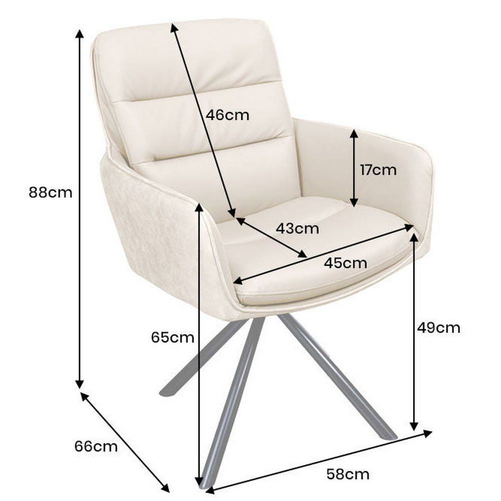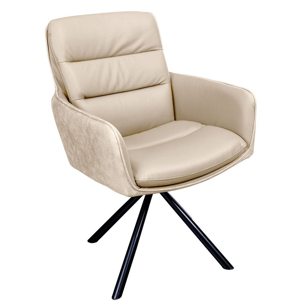 - 360° drehbarer Design Stuhl BRUNO Beige Echtleder Microfaser Metall-Stuhlbeine Schwarz Armlehne