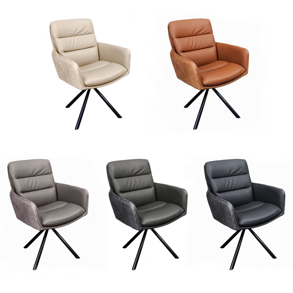 - 360° drehbarer Design Stuhl BRUNO Taupe Echtleder Microfaser Metall-Stuhlbeine Schwarz Armlehne