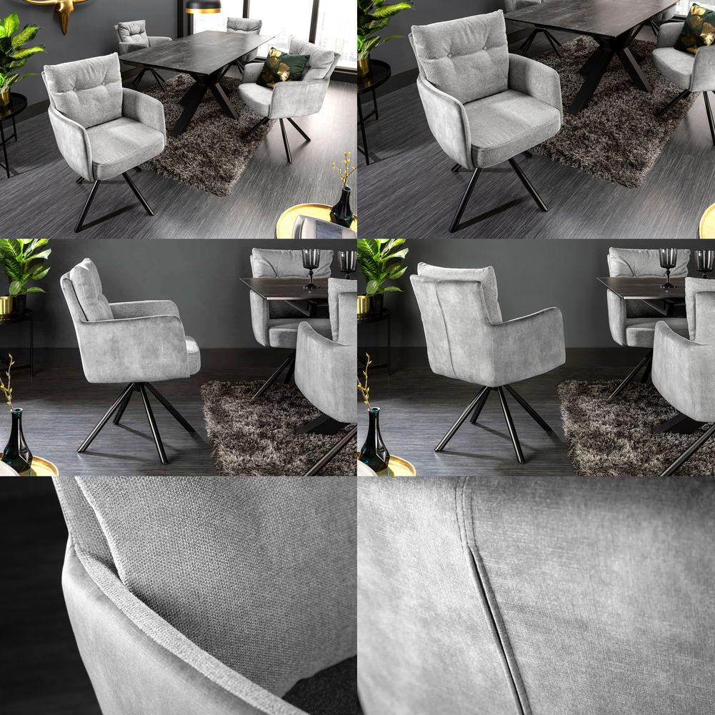 - 360° drehbarer Design Stuhl MARCO Grau Samt Flachgewebe Metall-Stuhlbeine Schwarz mit Armlehne