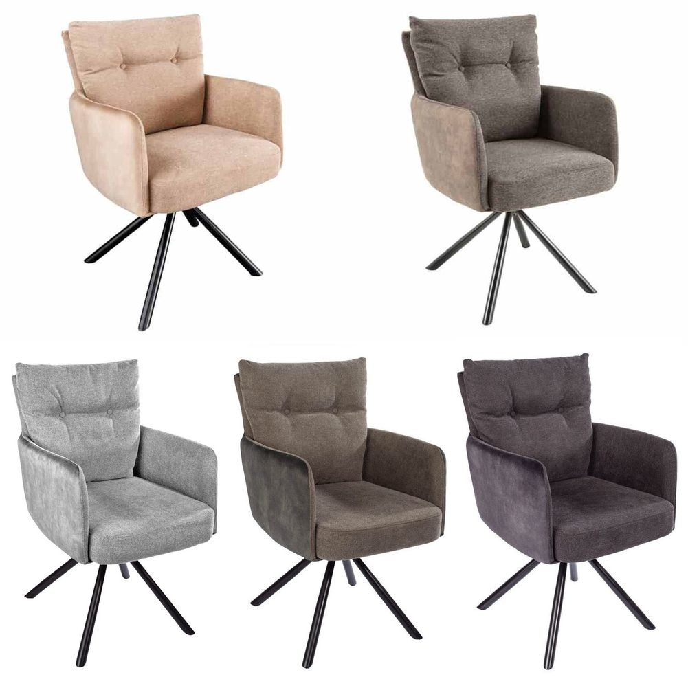 - 360° drehbarer Design Stuhl MARCO Taupe Microfaser Flachgewebe Metall-Stuhlbeine Schwarz mit Armlehne