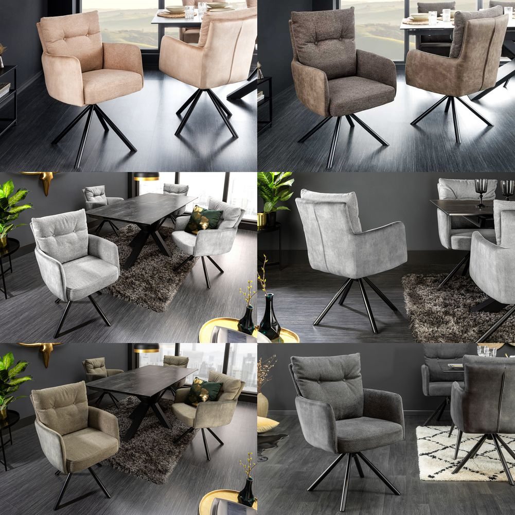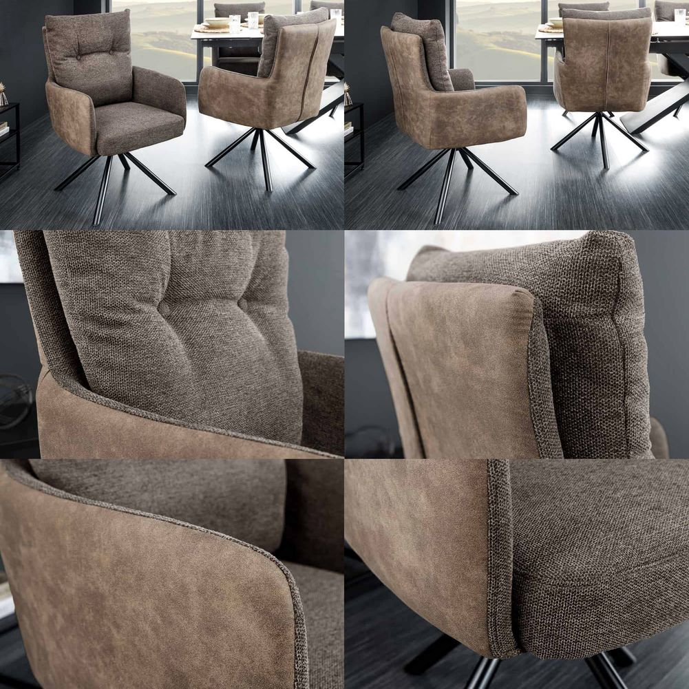 - 360° drehbarer Design Stuhl MARCO Taupe Microfaser Flachgewebe Metall-Stuhlbeine Schwarz mit Armlehne