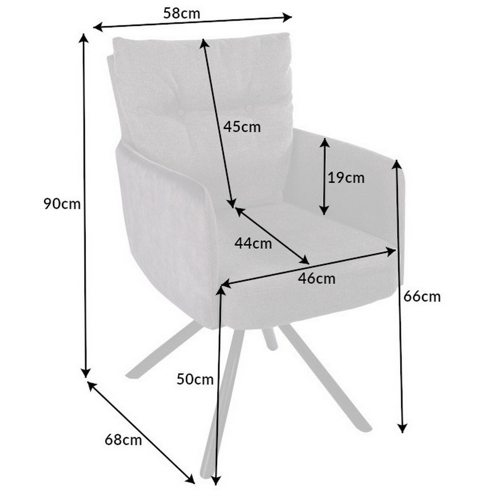 Die Innenseite des Stuhls ist mit modernem Flachgewebe in elegantem Taupe bezogen, das nicht nur optisch ansprechend, sondern auch pflegeleicht und strapazierfähig ist. Dieses Material gewährleistet hohen Sitzkomfort und Langlebigkeit, sodass Sie lange Freude an Ihrem Stuhl haben werden. Die Außenseite beeindruckt durch ein feines Microfaser, während die Rückenlehne mit stilvollen Zierknöpfen veredelt ist.