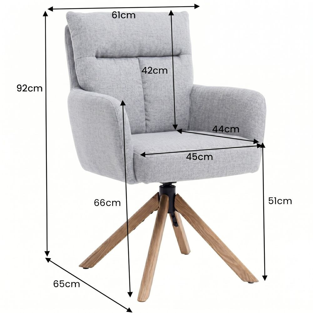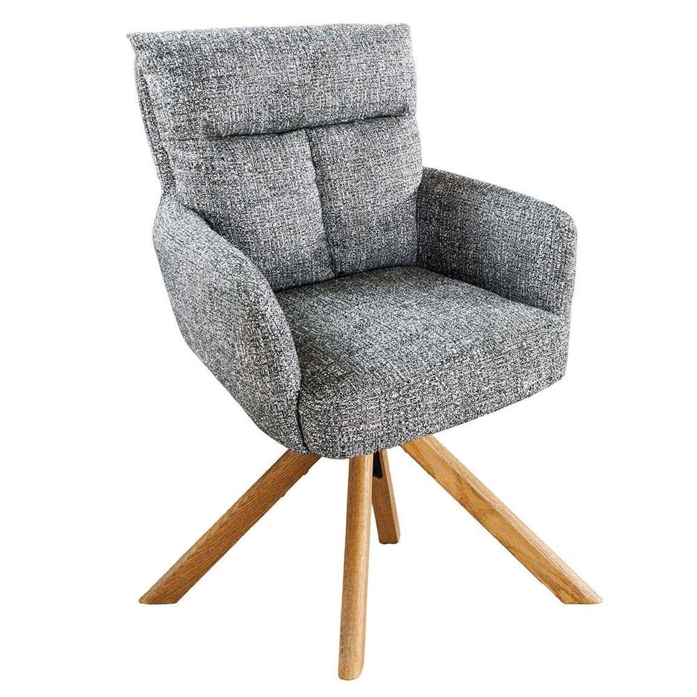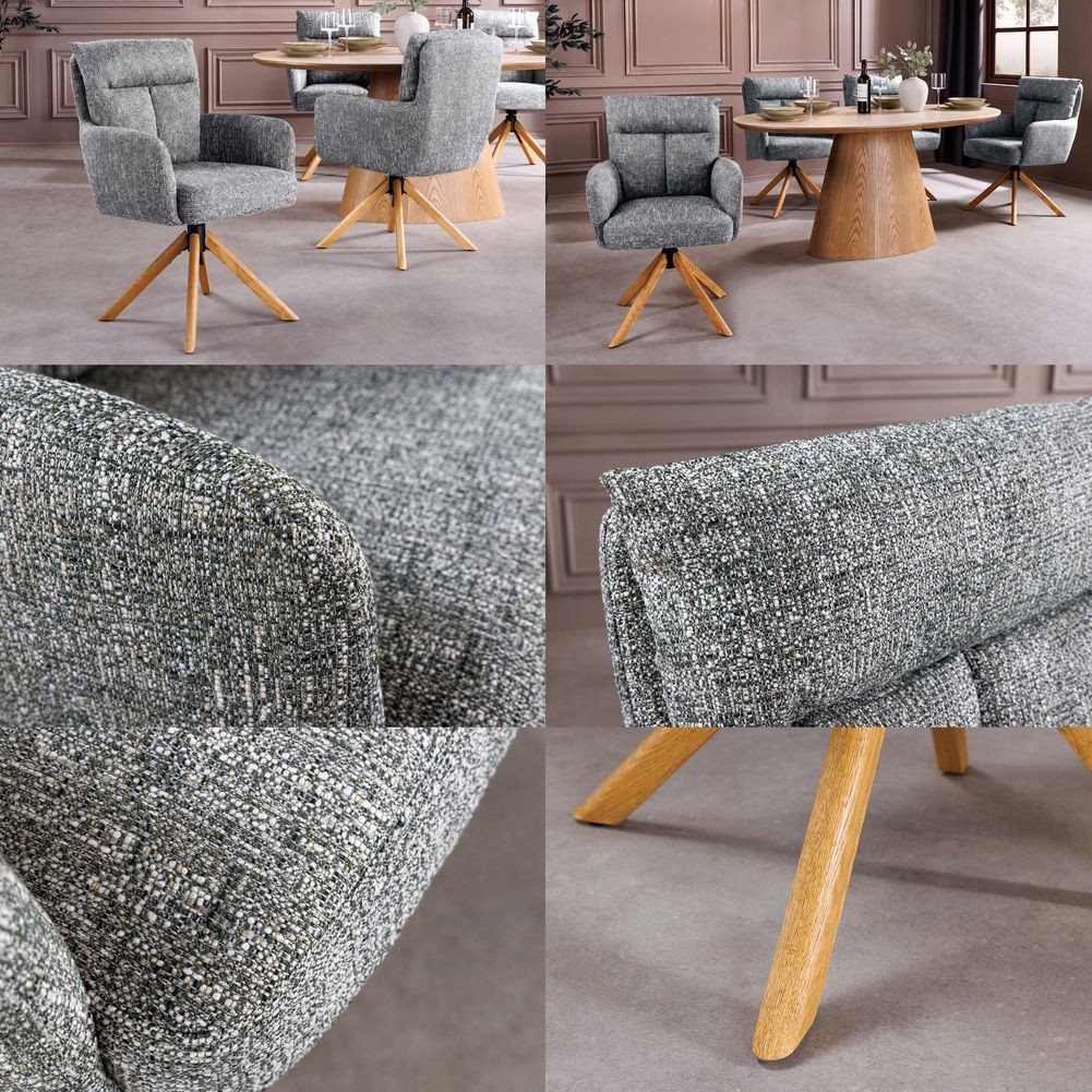 • 360° drehbarer Stuhl VALENTO Grau Strukturstoff Eichenholz-Beine mit Armlehne