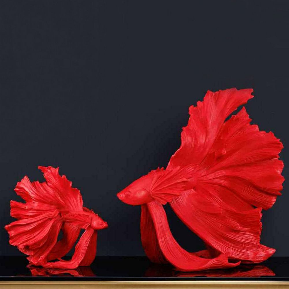 - Deko Skulptur BETTA Kampffisch Halfmoon Rot glänzend 36cm & 60cm