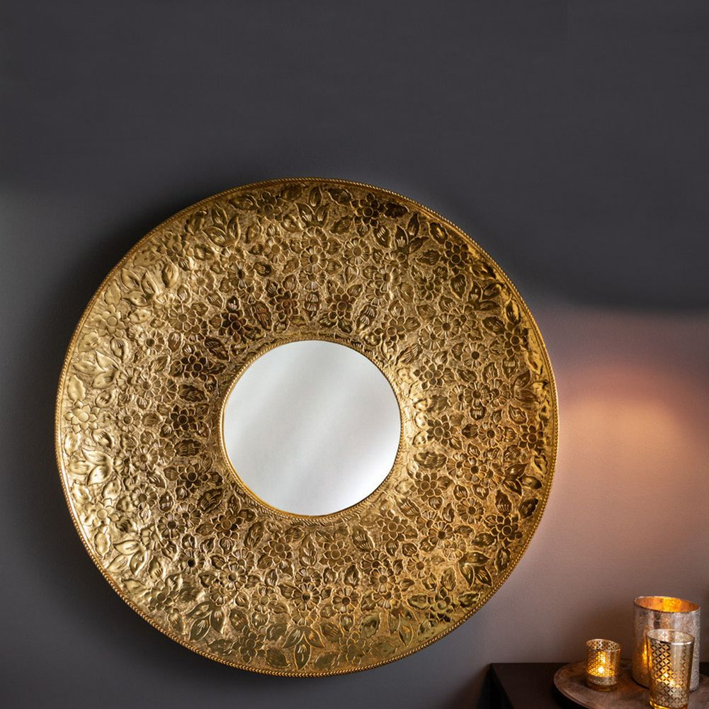 - Wandspiegel GARA Gold aus Aluminium im Blumen-Design handgefertigt 82cm Ø