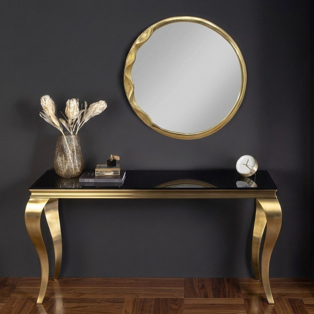 - Handgefertigter Wandspiegel ORION Gold Rund in geschmolzener Optik Metall-Aluminium 53cm