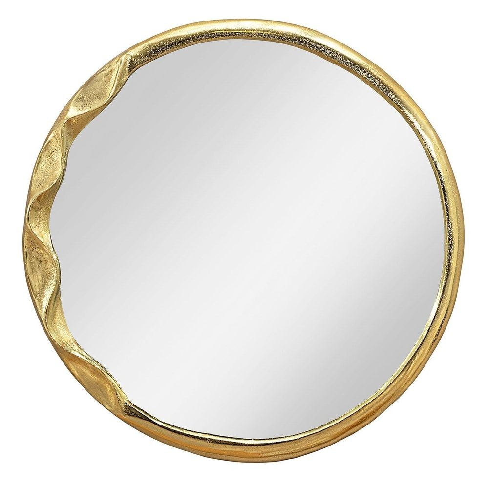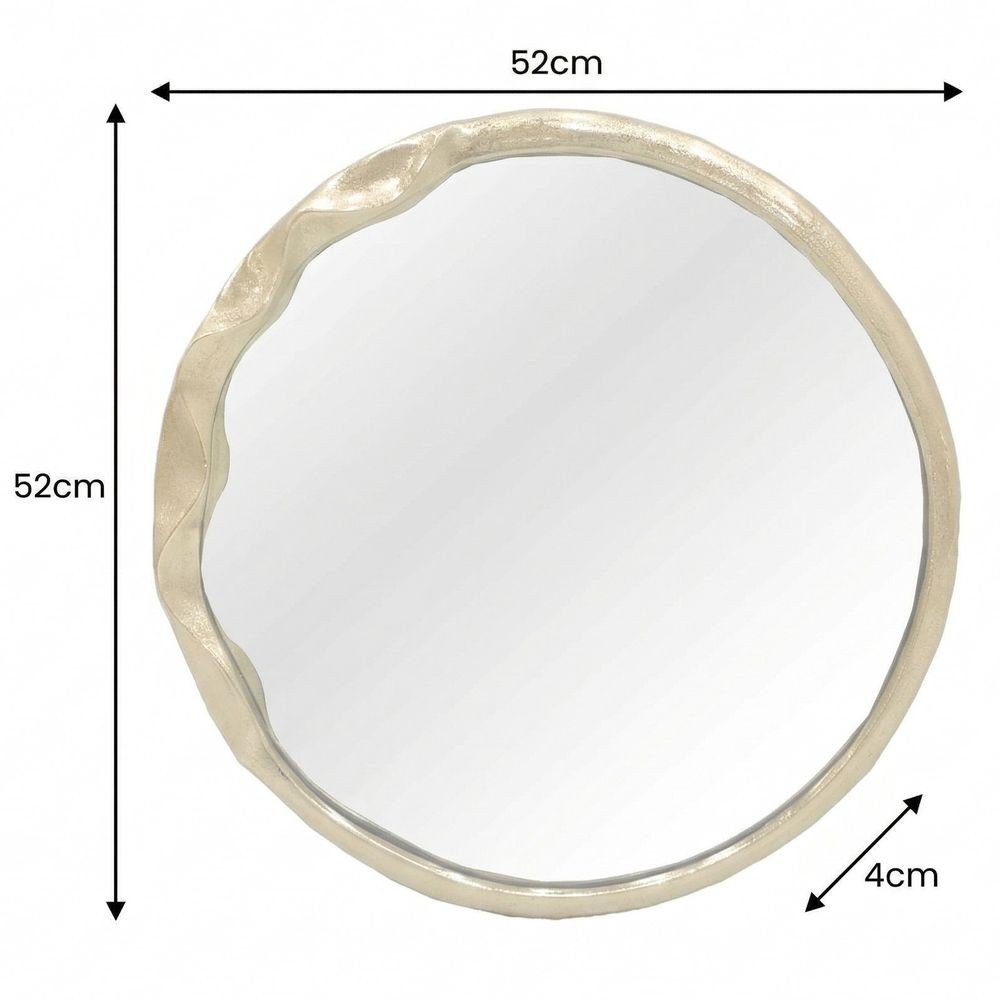 - Handgefertigter Wandspiegel ORION Gold Rund in geschmolzener Optik Metall-Aluminium 53cm