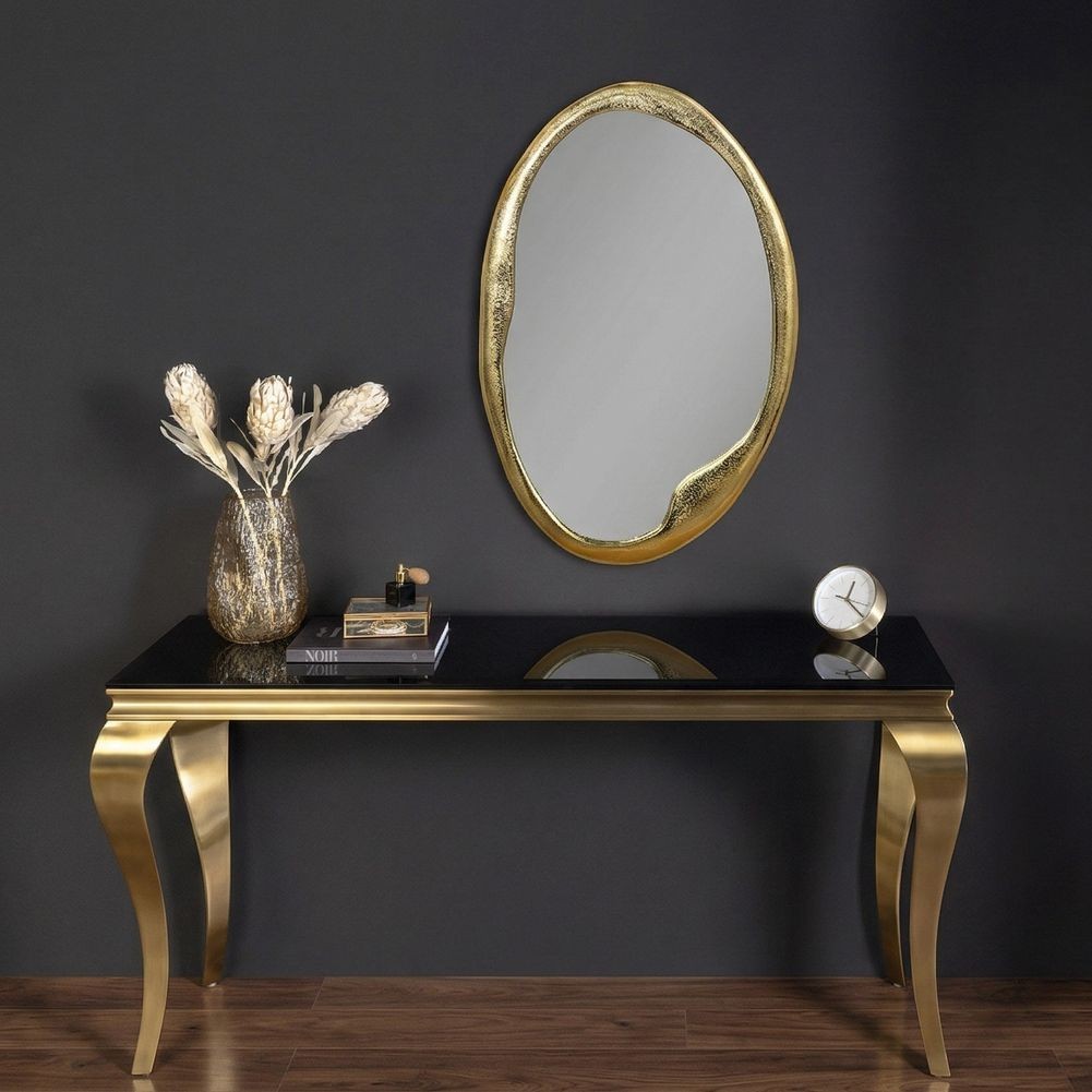- Handgefertigter Wandspiegel ORION Gold Oval in geschmolzener Optik Metall-Aluminium 71cm
