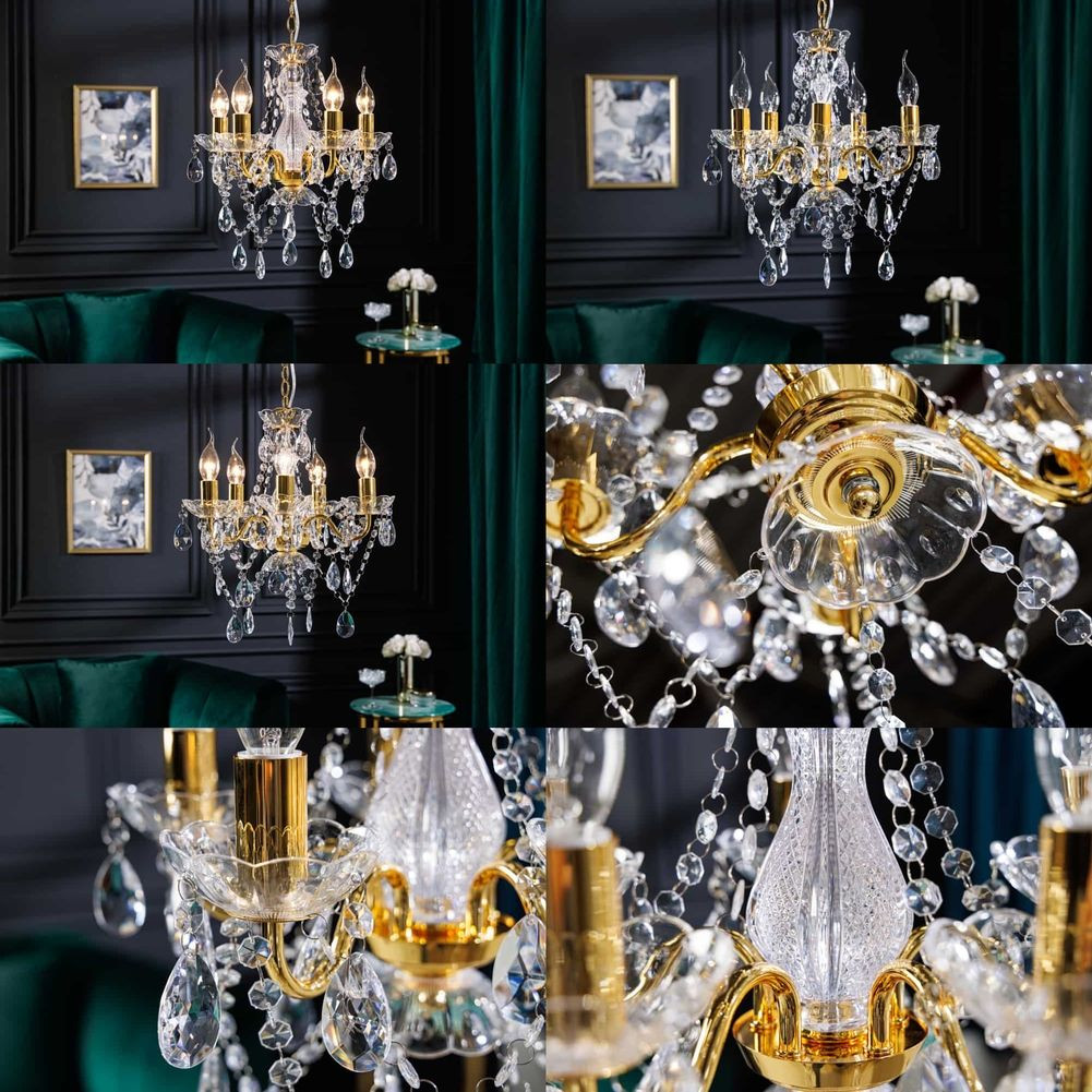 - Kronleuchter CHLOE Gold-Klar 5-armig 38cm Ø