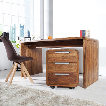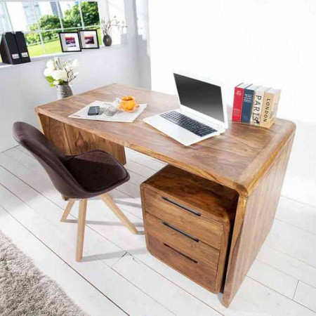 Der Schreibtisch DAIPUR 120cm besticht durch seine klare, organische Form mit stylisch abgerundeten Schreibtischkanten in zeitlosem Sheeshamholz. Die beiden geräumigen Schubladen bieten ausreichend Platz für allerlei Dinge und sorgen gleichzeitig für Übersicht und Ordnung.