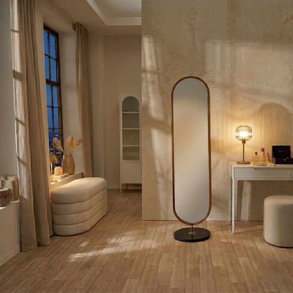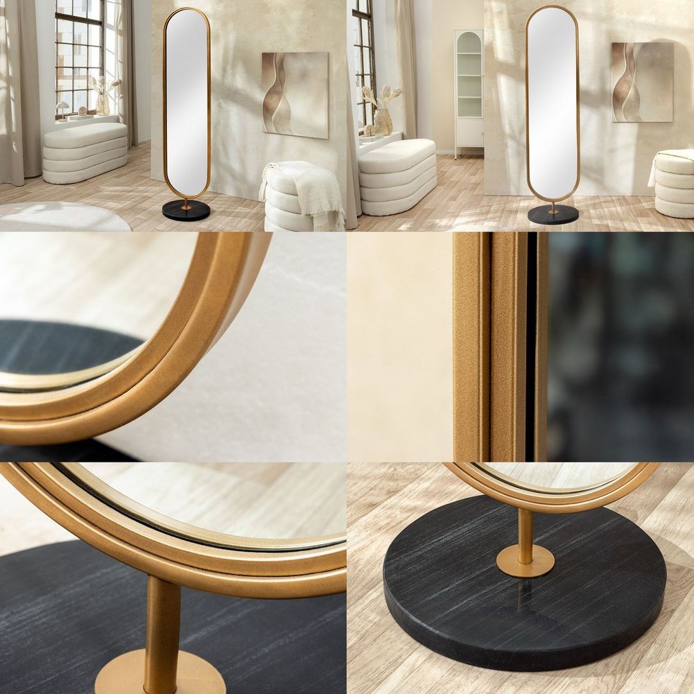 - Standspiegel IMPERIA Gold Oval Eisen & Marmorfuß Schwarz 172cm Handgefertigt