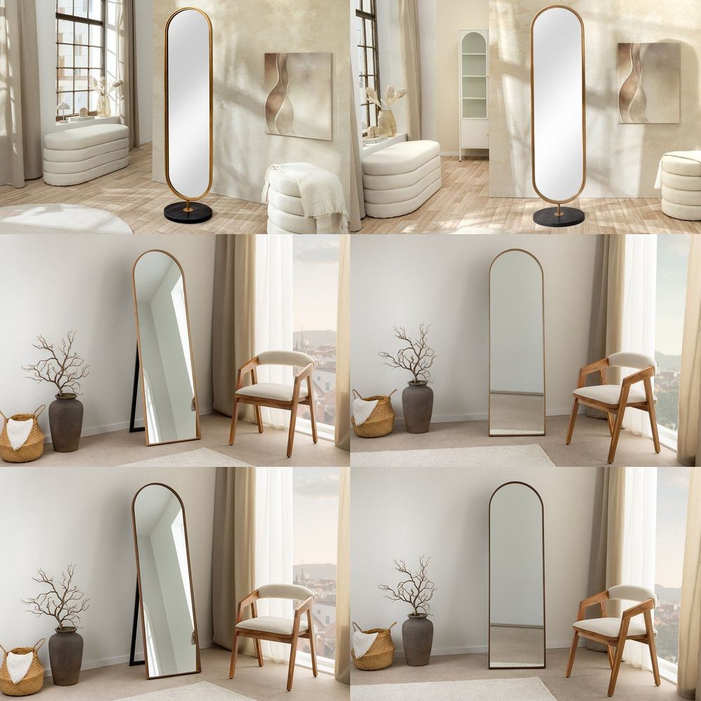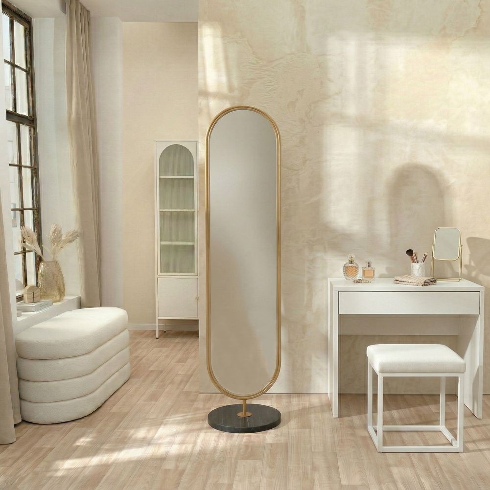 - Standspiegel IMPERIA Gold Oval Eisen & Marmorfuß Schwarz 172cm Handgefertigt