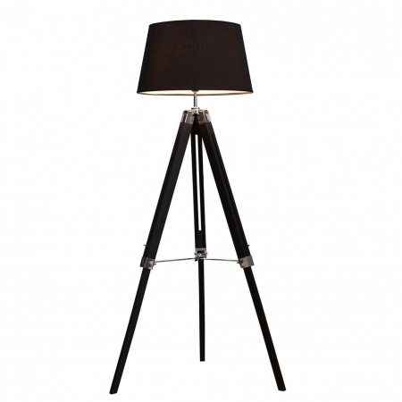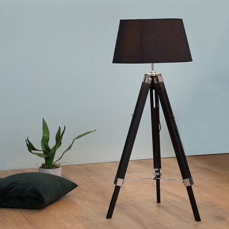- Stehlampe CUP Schwarz mit Dreibein-Gestell Braun aus Massivholz 100-145cm Höhe