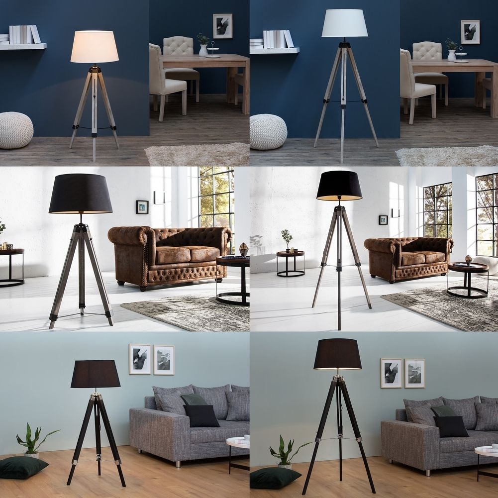 - Stehlampe CUP Weiß mit Dreibein-Gestell Natur aus Massivholz 100-145cm Höhe