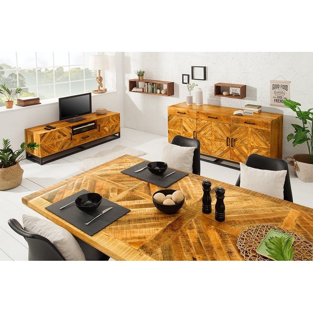 - TV-Board SITA Natur aus Mangoholz in Fischgratoptik handgefertigt 160cm