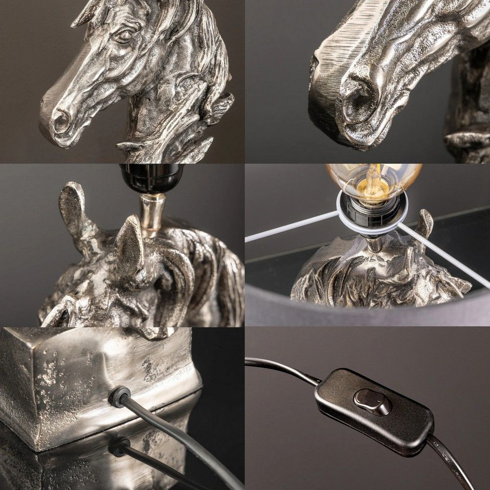 - Tischlampe Pferd LEGEND Skulptur Silber Aluminium Schirm Schwarz 54cm