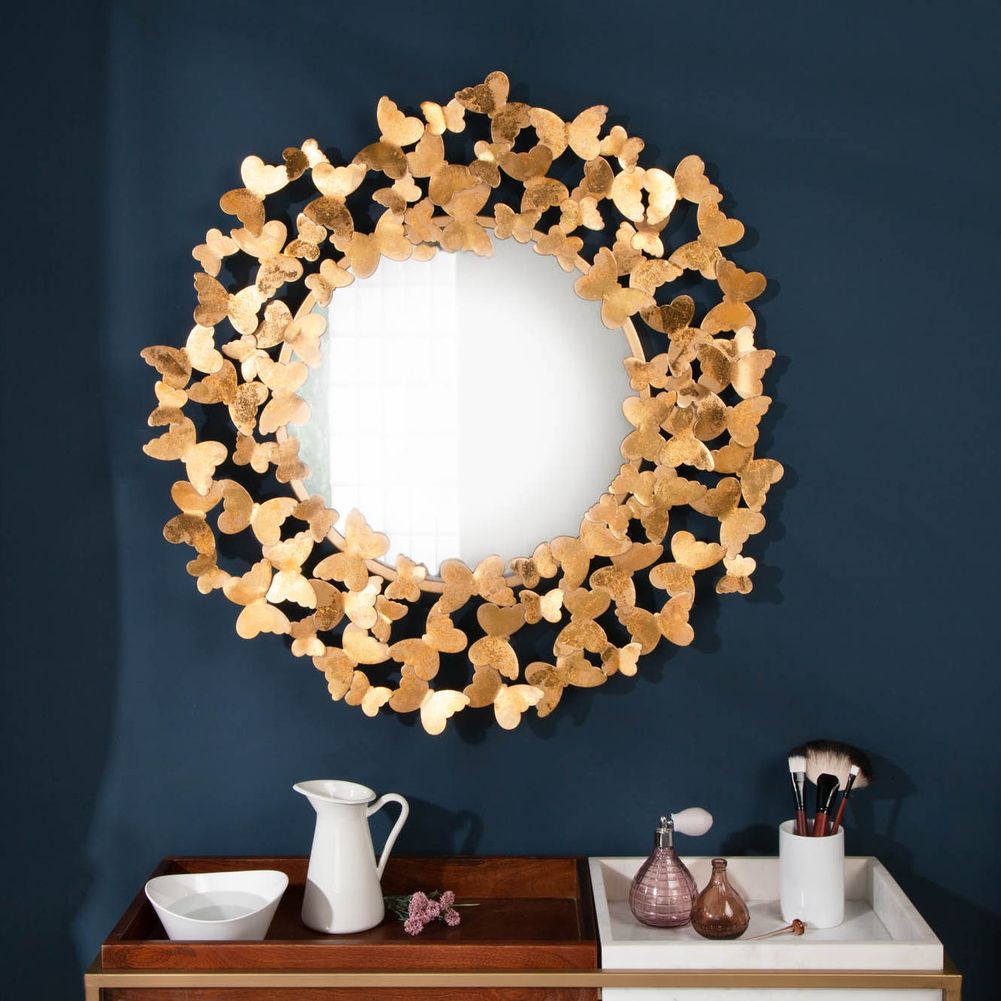 Außergewöhnlicher Eyecatcher - Entdecke den Zauber des Wandspiegel MARIPOSA Gold aus Metallplättchen im Schmetterling-Design Rund handgefertigt 80cm