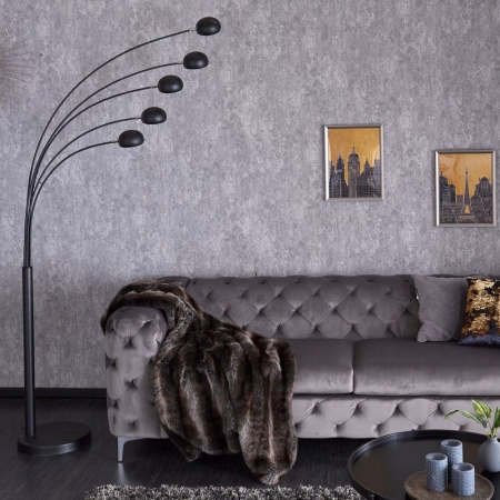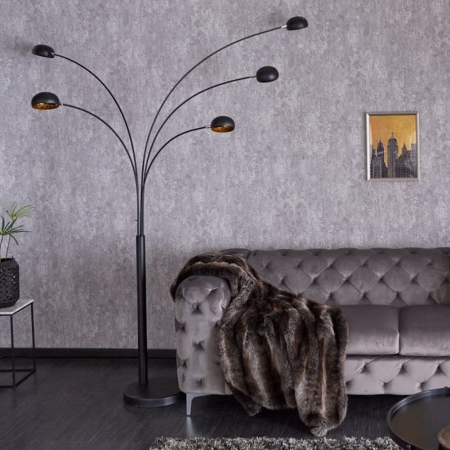 - Stehlampe TULIPA Schwarz-Gold mit schwarzem Metallfuß 205cm