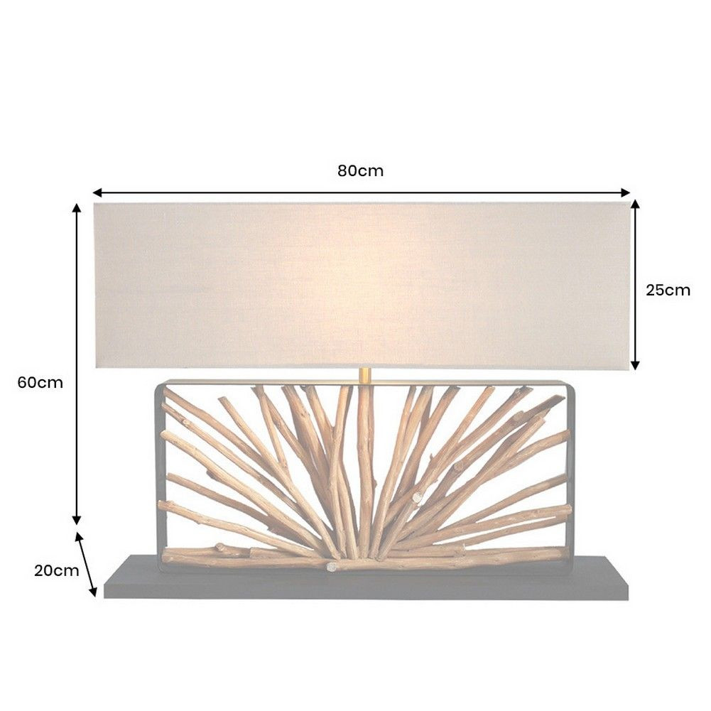 | Material: | Lampenfächer: Longanholz Lampenschirm: Stoff (65% Leinen, 35% Polyester) Lampengestell: Resopal Lampenfuß: Resopal |