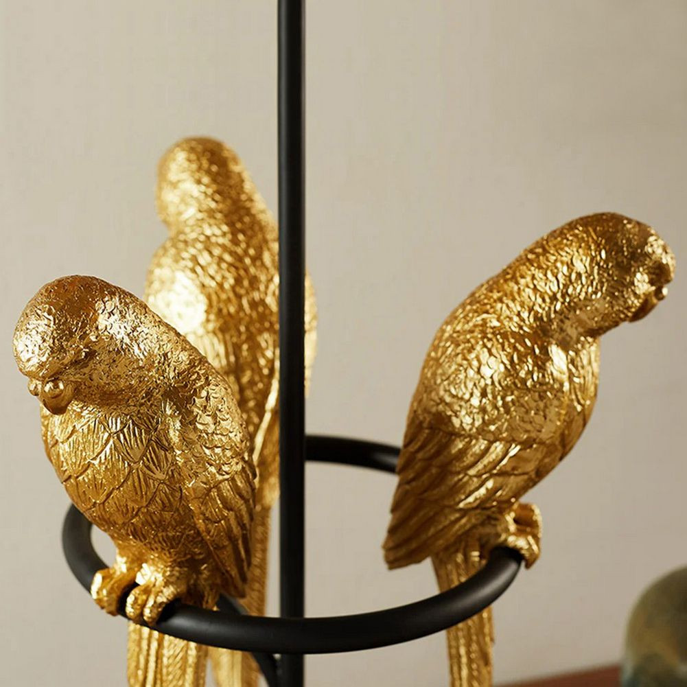Die elegante Haltung des Papageis löst beim Betrachter sofort Bewunderung aus. Jede Lampenskulptur PAPAGEIEN wird von Fachleuten in sorgfältiger Handarbeit gefertigt – die detailgetreuen Papagei-Skulpturen bestehen aus hochwertigem Polyresin. Der großzügig dimensionierte Lampenschirm aus Stoff ist außen in zeitlosem Schwarz und innen in edlem Gold gehalten. Er lenkt das Licht gezielt nach oben und unten und erzeugt so eine blendfreie, atmosphärische Beleuchtung mit besonders sanftem Charakter. Der Lampensockel aus schwarzem Marmor unterstreicht das luxuriöse Gesamtbild und sorgt für stabilen Stand.