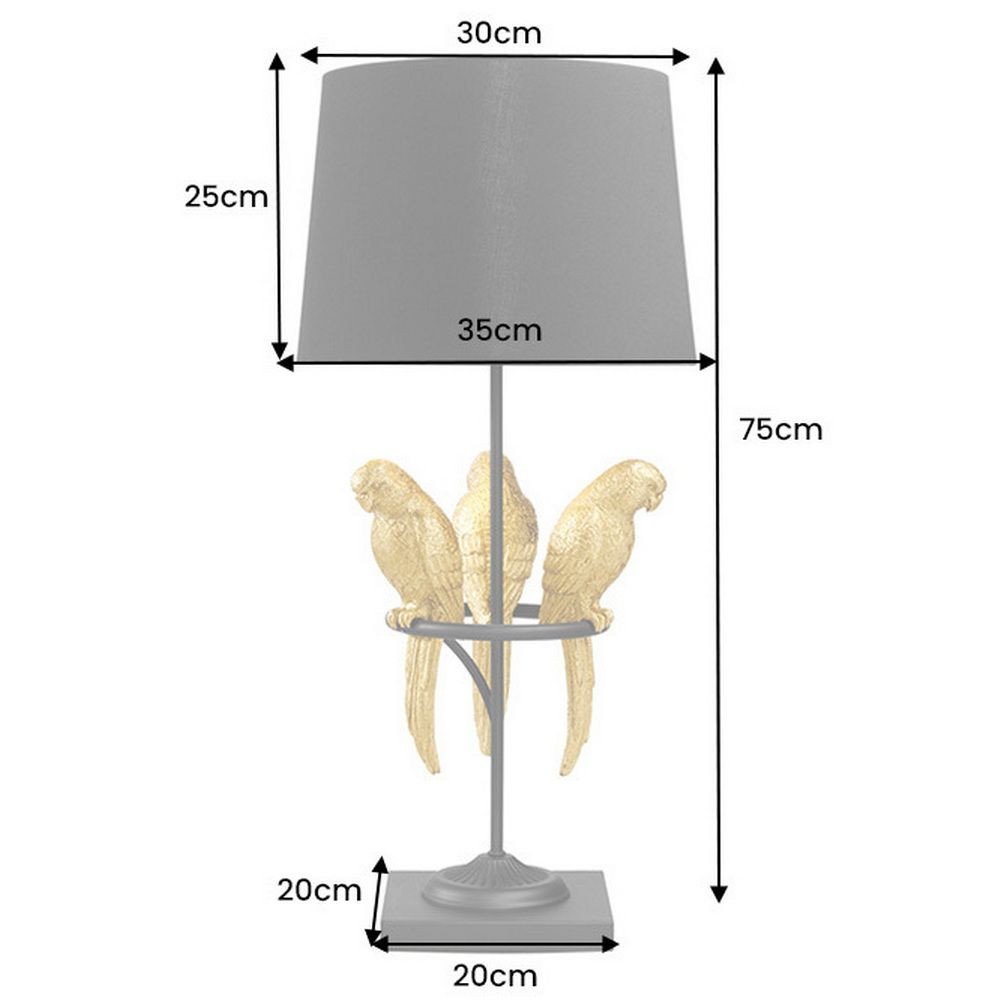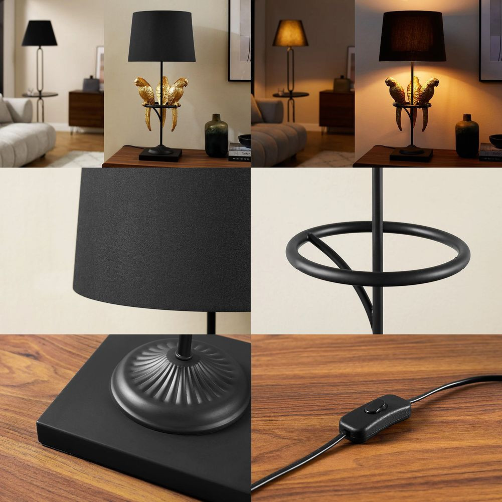 - Tischlampe PAPAGEIEN Skulptur Gold Schirm Schwarz & Marmorfuß 75cm