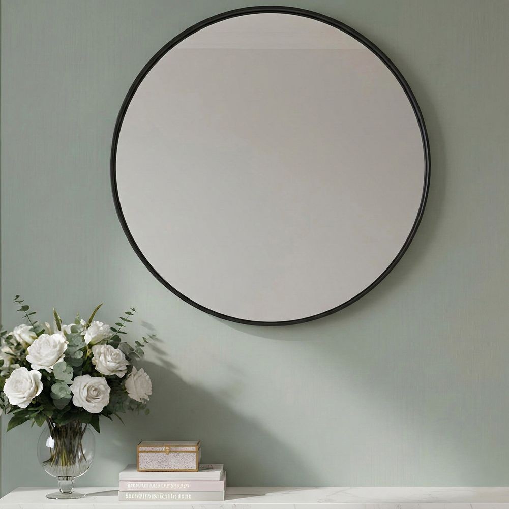 - Zeitlos eleganter Wandspiegel LEIA Schwarz Rund Aluminium 60cm