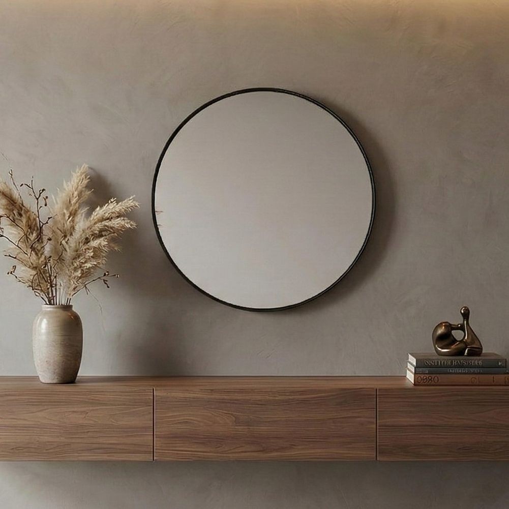 - Zeitlos eleganter Wandspiegel LEIA Schwarz Rund Aluminium 75cm