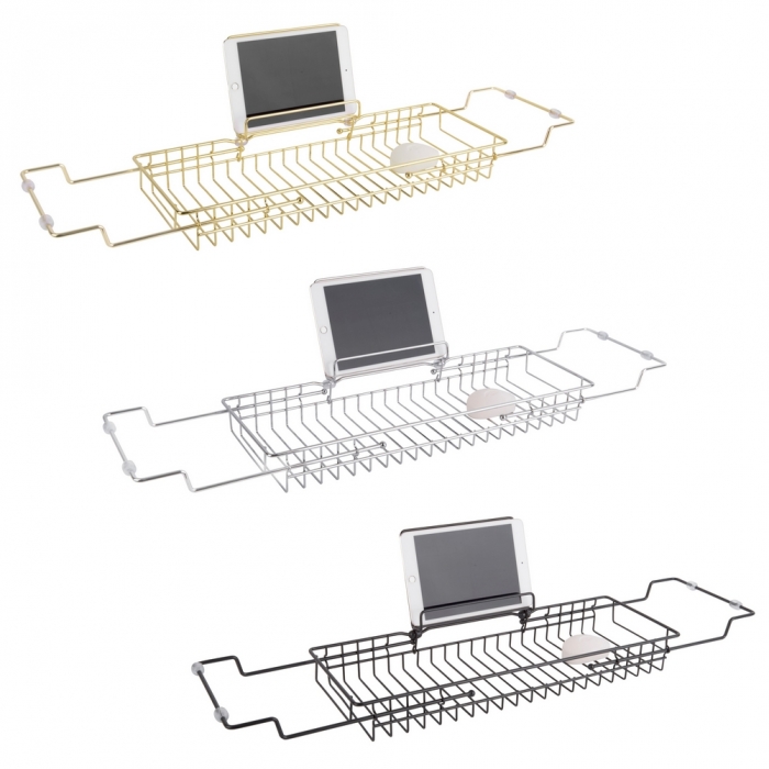 - Badewannenablage MATS Chrom mit ausklappbarer Buchstütze 63cm-87cm